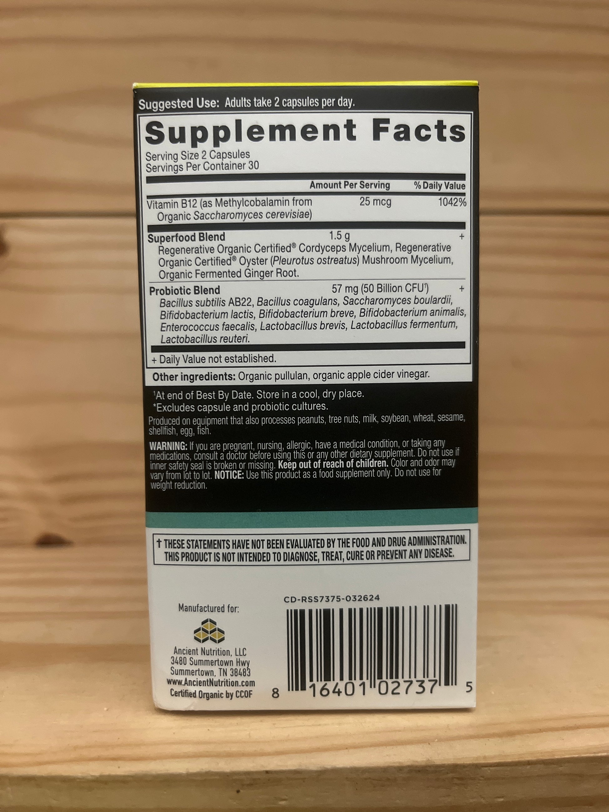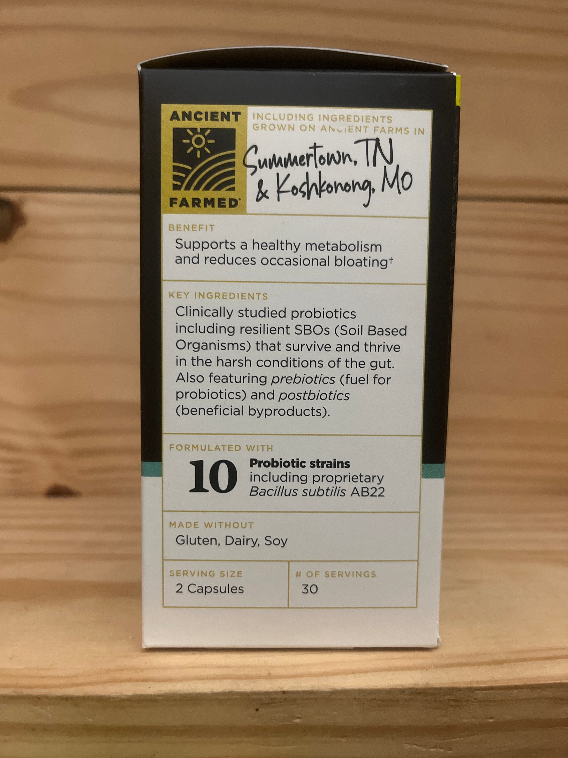 Powerful probiotics for supporting a healthy, thriving metabolism*. This formula brings you a never-seen-before combination of prebiotics, postbiotics and 10 probiotics strains – plus herbs and mushrooms grown in nutrient-dense soil on regenerative farms.