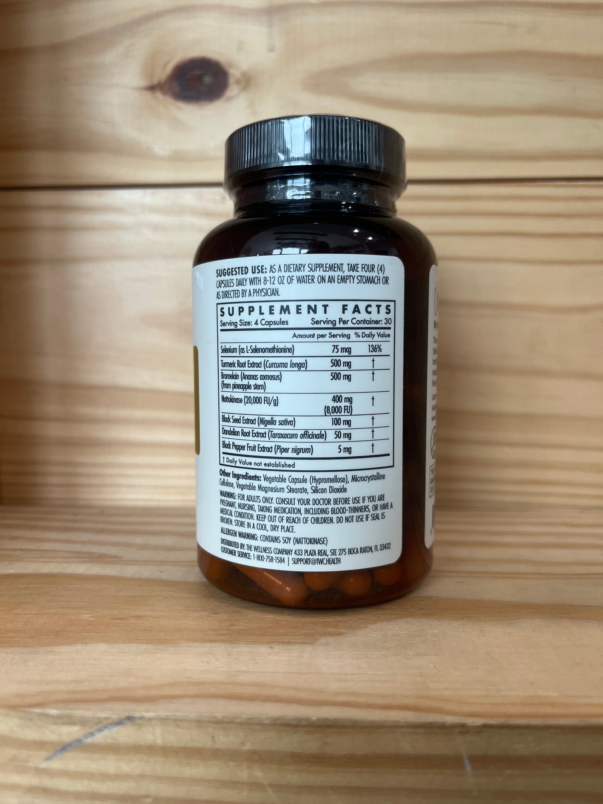 Turmeric Root Extract and Black Pepper Fruit Extract: The bioavailability of Turmeric’s phytonutrients that may boost cellular repair and your immune system are enhanced by piperine, the bioactive compound in Black Pepper.The Wellness Company