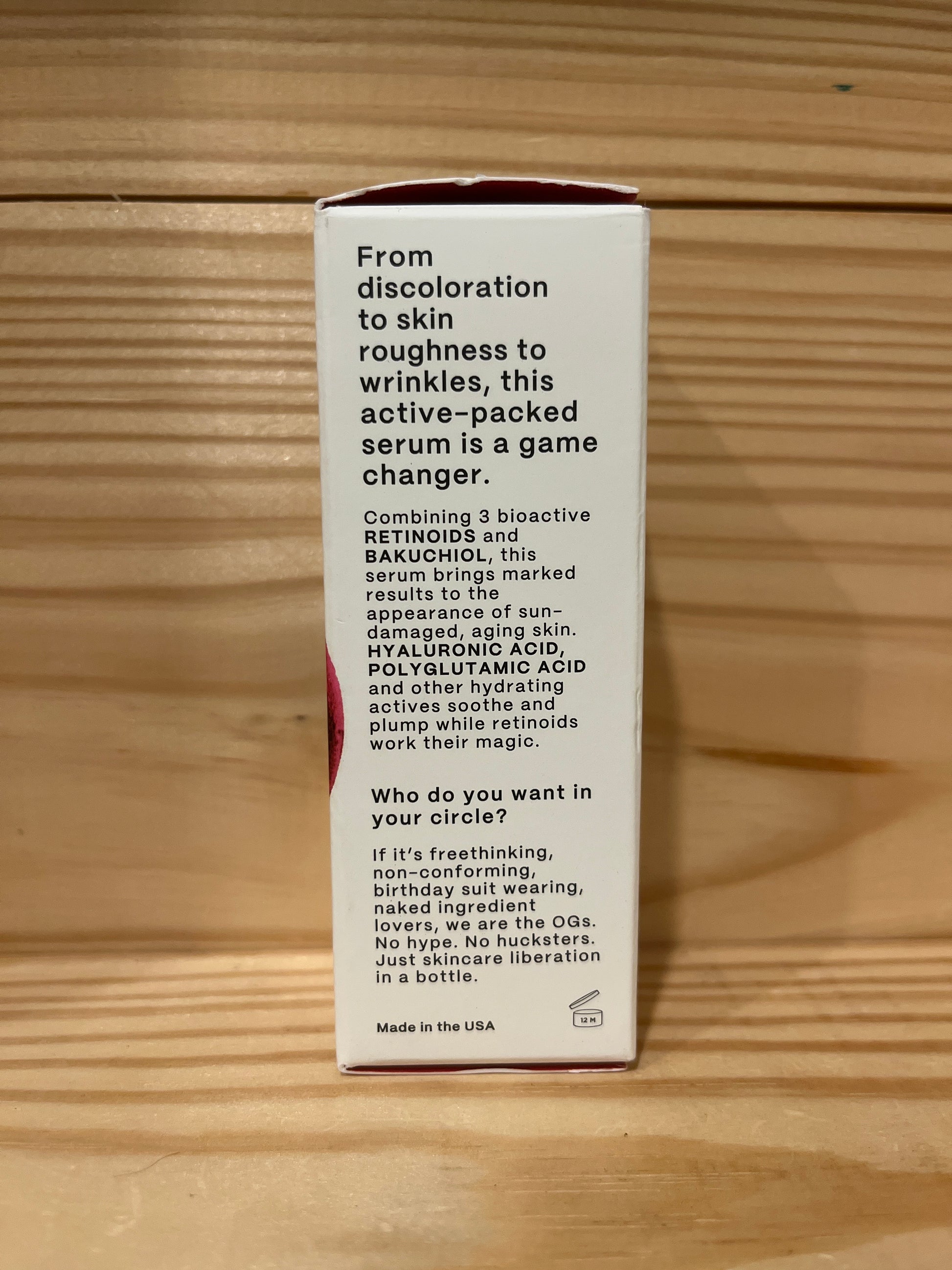 Next level serum....feared by wrinkles & sun damage alike. Our cutting-edge serum uses a form of vitamin A that is 2X more bioavailable than retinol...bringing marked results to wrinkles & skin discoloration. Coupled with vegan sourced ceramides & sodium hyaluronate, the salt of hyaluronic acid with greater skin penetrating/hydrating qualities than HA alone.